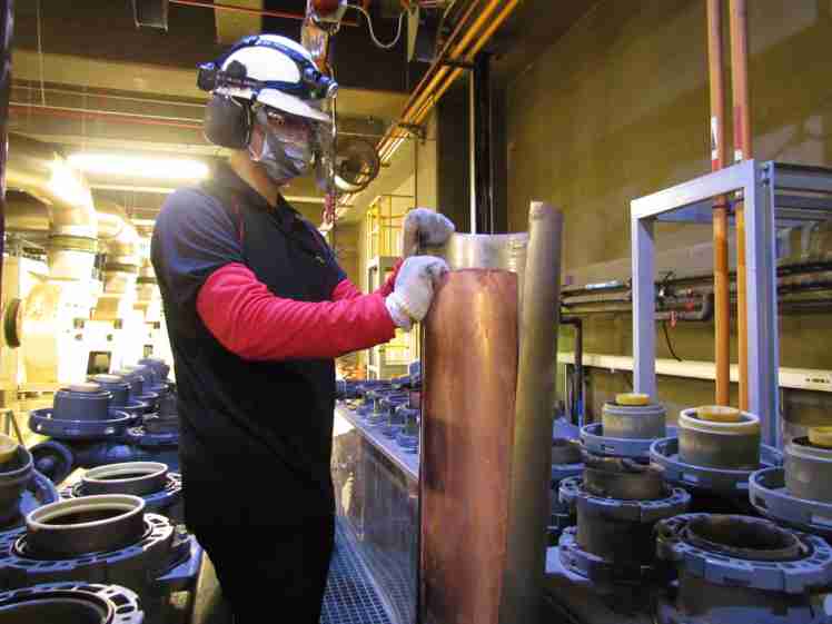 尊时凯龙将废弃物转化成有效的工业或民生原物料,,,,图为废铜液淬炼后再制成纯度极高的铜管
