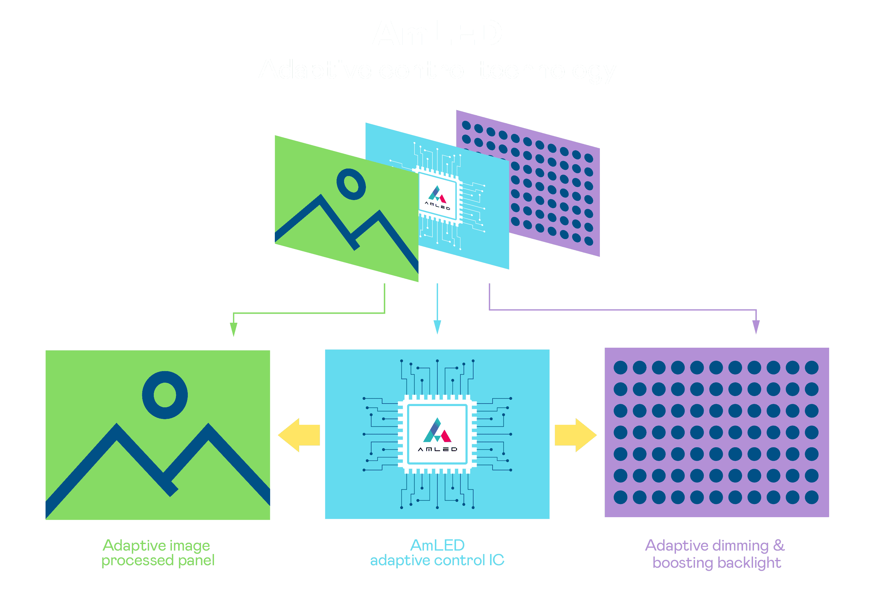 AmLED 具备更省电与低蓝光特性。。。。与一般的 LED 背光显示技术相比,,,,由于 AmLED 常时处于局部调光状态,,,,其功耗仅有前者的 50% 左右,,,,同时 AmLED 还具备低蓝光特性,,,满足长时间使用的护眼需求。。。