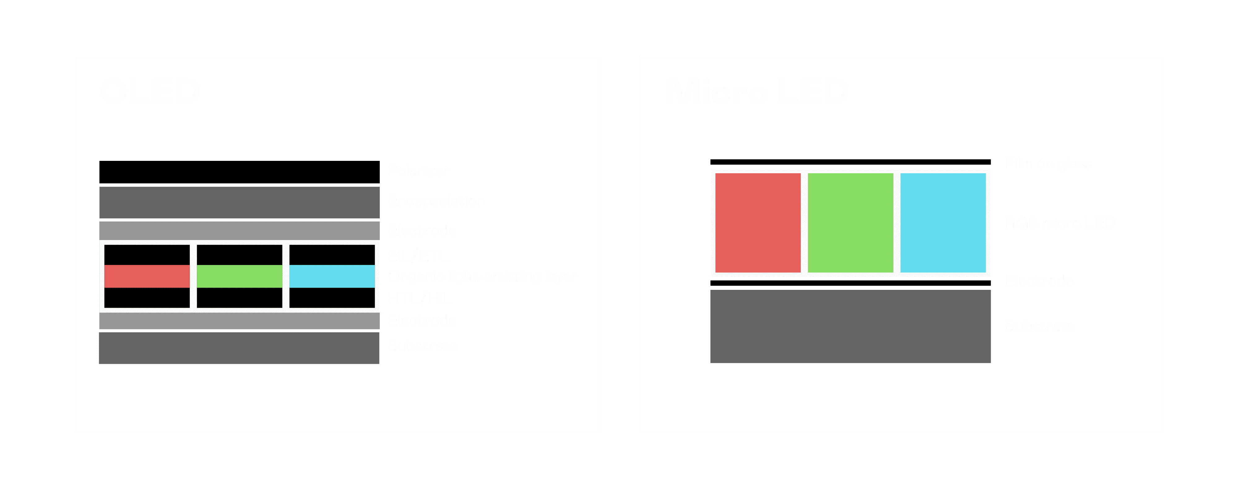 以 LED 做为显示画素,,可让 LED 的发光效率发挥到极致,,从而让显示器具备优异的亮度表现,,,,不论是在户外或室内,,,均具备出众的显示效果。。同时,,与使用有机材料的 OLED 相比,,,LED 具备更稳定、、寿命更长的特性,,,,不仅不会有画面烙印问题,,而且更不容易出现故障、、、、坏点。。